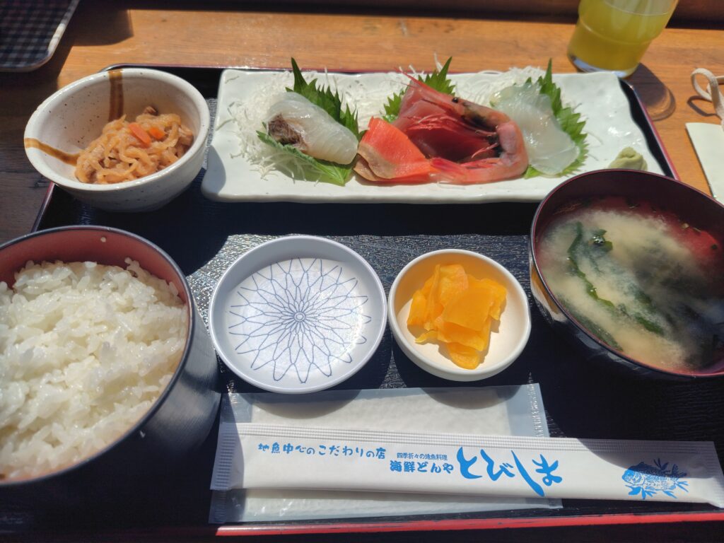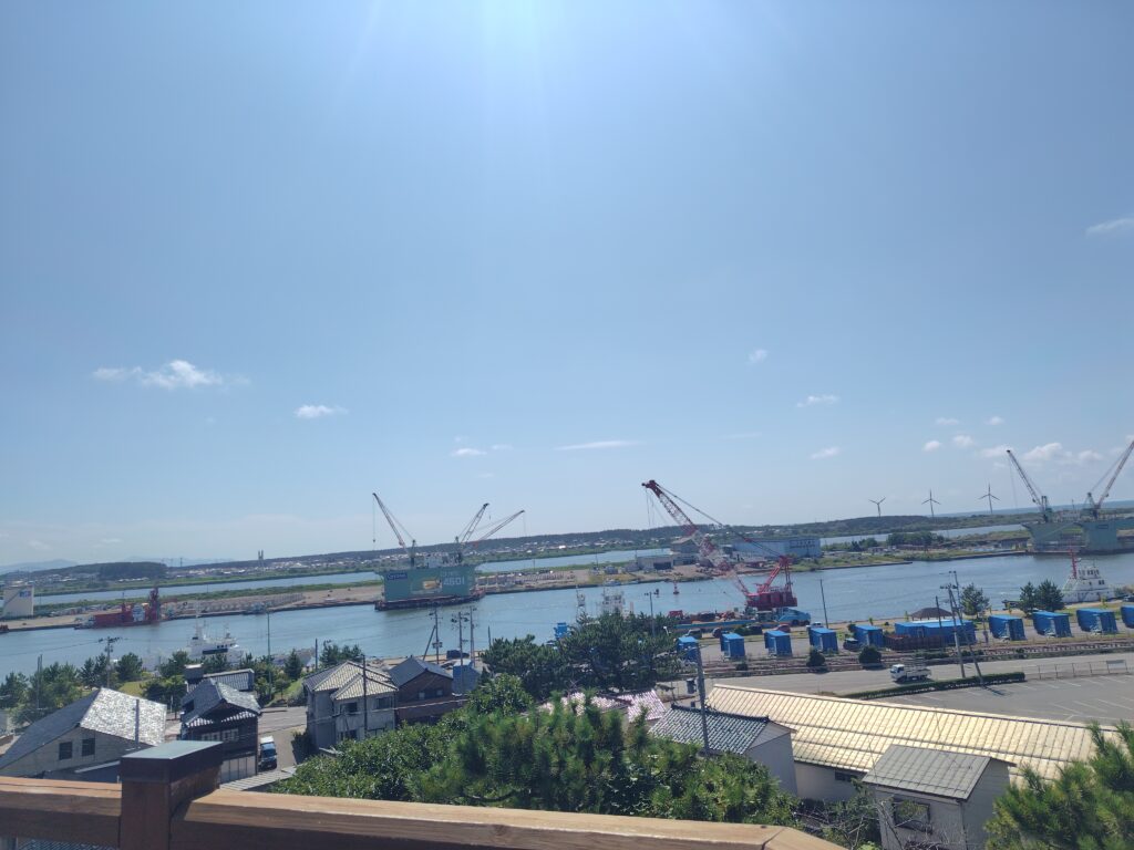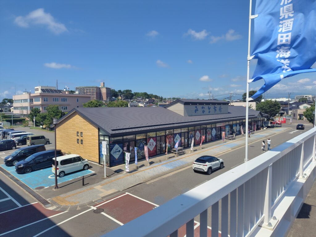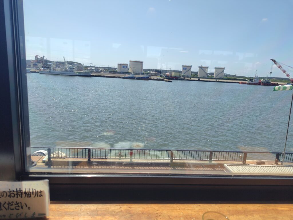 酒田市は庄内地方における中心的な地位を持つ都市であるほかに、山形県を代表する一大観光都市でもあります。駅から歩ける範囲に多くの観光スポットが広がっています。とりあえずお昼も過ぎていますので、まずはお昼ご飯を食べに行こうと思います。目指すのは沿岸、酒田港です。酒田市には飛島という離島があり、飛島に向かうためのフェリーがこの港から出ます。今回は時間的にも飛島へ行けないですが、港ということで、ここで海鮮を頂こうと思います。鮮度抜群で、絶品のお刺身を頂くことが出来ました。