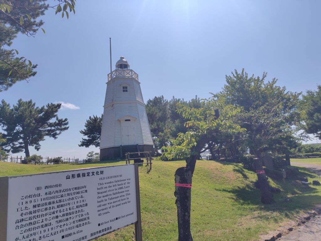 さて、歩いて行ける範囲にと書きましたが、ここでは自転車をお借りすることが出来ました。しかも無料で借りられ、駅前の観光案内所などでも返すことが出来るそうで、かなり利便性が高いです。しかも酒田港には返却式のコインロッカーまでありました。荷物を身軽にして、ありがたく使わせて頂くこととしました。まず訪ねるのは、港からすぐ近くの日和山公園です。港の近くだからか灯台があり、地元の方に愛された静かな公園といった印象のよいところです。地元の方と話す機会もあり、良かったです。