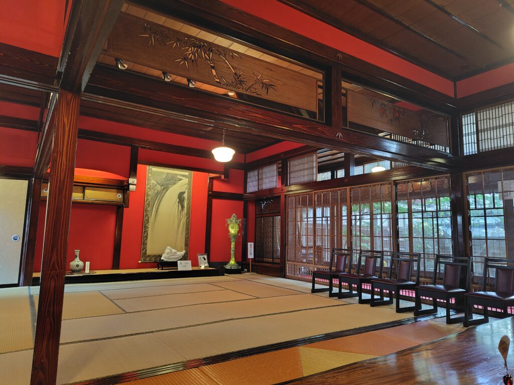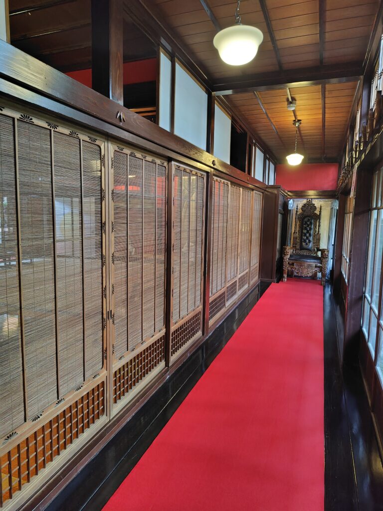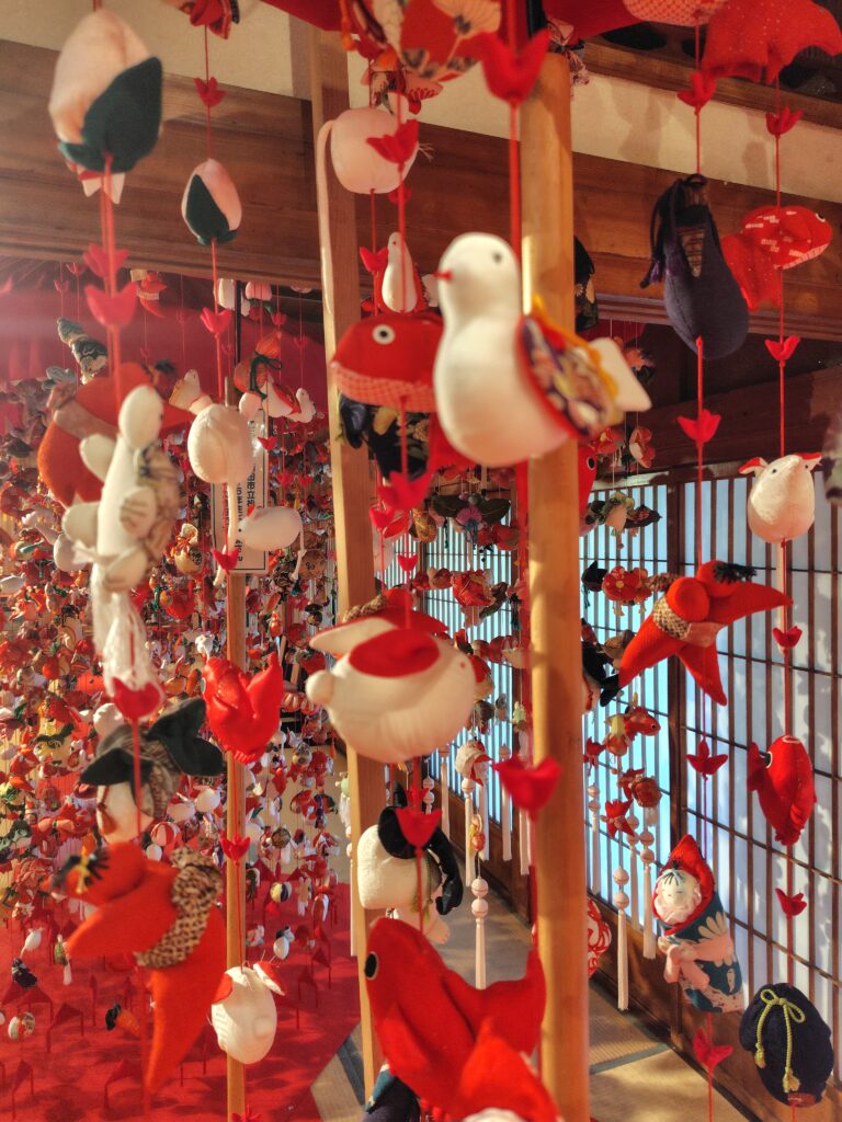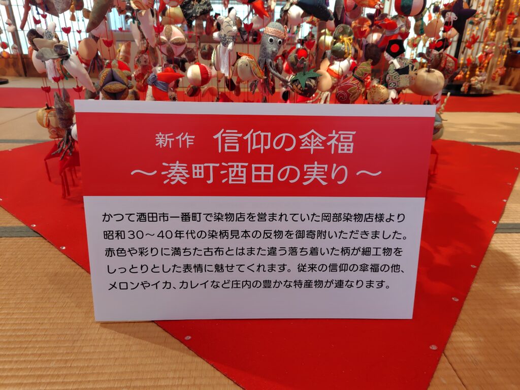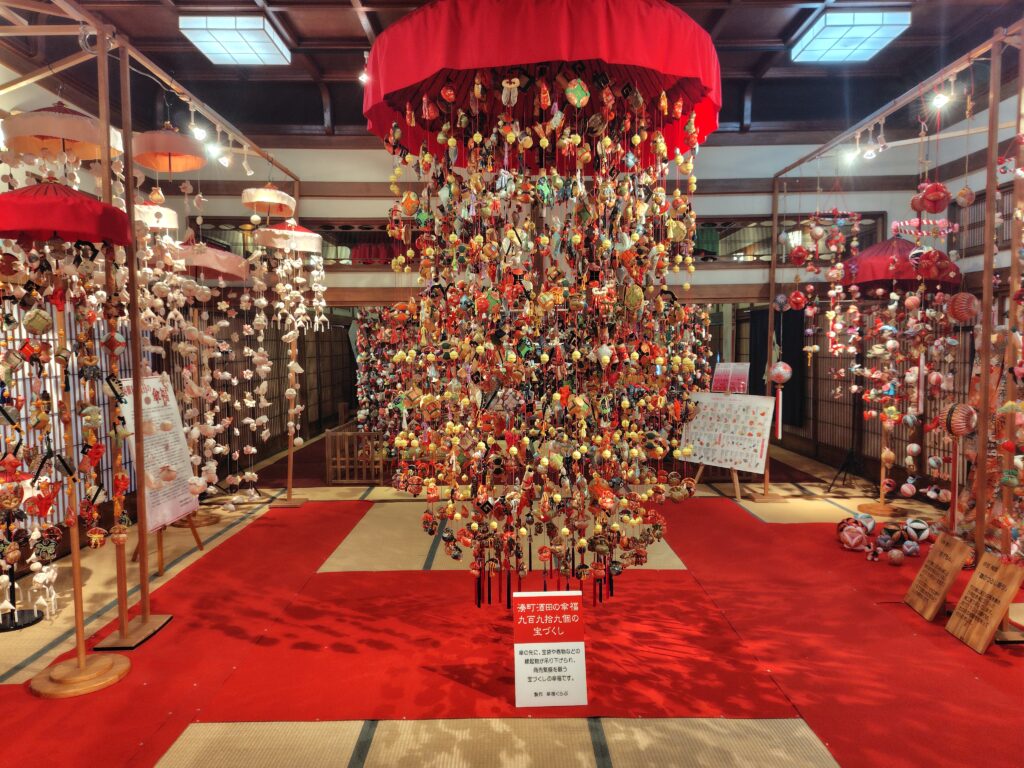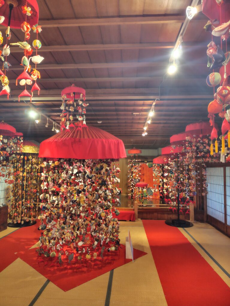 市内のどこを観光するかあまり決めていなかったので、日和山公園で話した地元の方にお勧め頂いたところに行ってみようと思います。それが、山王くらぶと相馬樓の二か所です。まずは山王くらぶを訪ねようと思います。江戸時代の料亭を全身とする建物で、現在は歴史資料館というような役割を担っています。館内に入ると、まず2階を案内して頂きました。期間限定展示のようで、傘福という吊るし飾りが展示されていました。歴史情緒あふれる酒田市ならではの、歴史を感じる趣ある吊るし飾りで、和室に映える飾りはこの上ない美しさを感じました。