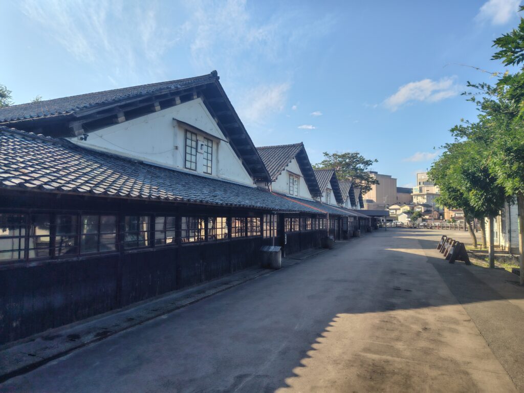 最後の観光、山居倉庫を訪ねます。明治期に使われていた米の倉庫群で、その光景に圧倒されます。一部の建物は現在も米蔵として使用されているようで、観光地であるだけでなく現役の蔵という立派なところです。紅葉シーズンや雪の降る時期に足を運ぶと、また違った顔を見ることが出来そうで、再訪したいと思います。