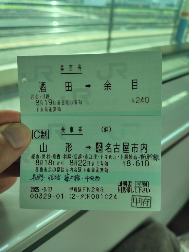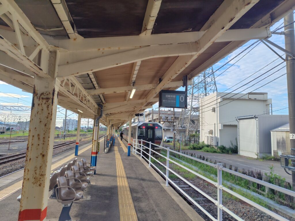 おはようございます。山形県庄内地方観光、2日目です。昨日は酒田市を巡りましたが、今回は庄内地方におけるもう1つの中心都市、鶴岡市に向かいます。7:02発の普通列車村上行に乗車します。陸羽西線との接続駅で昨日の乗換でも使用した余目駅を経由し、30分と少しで鶴岡駅に到着します。