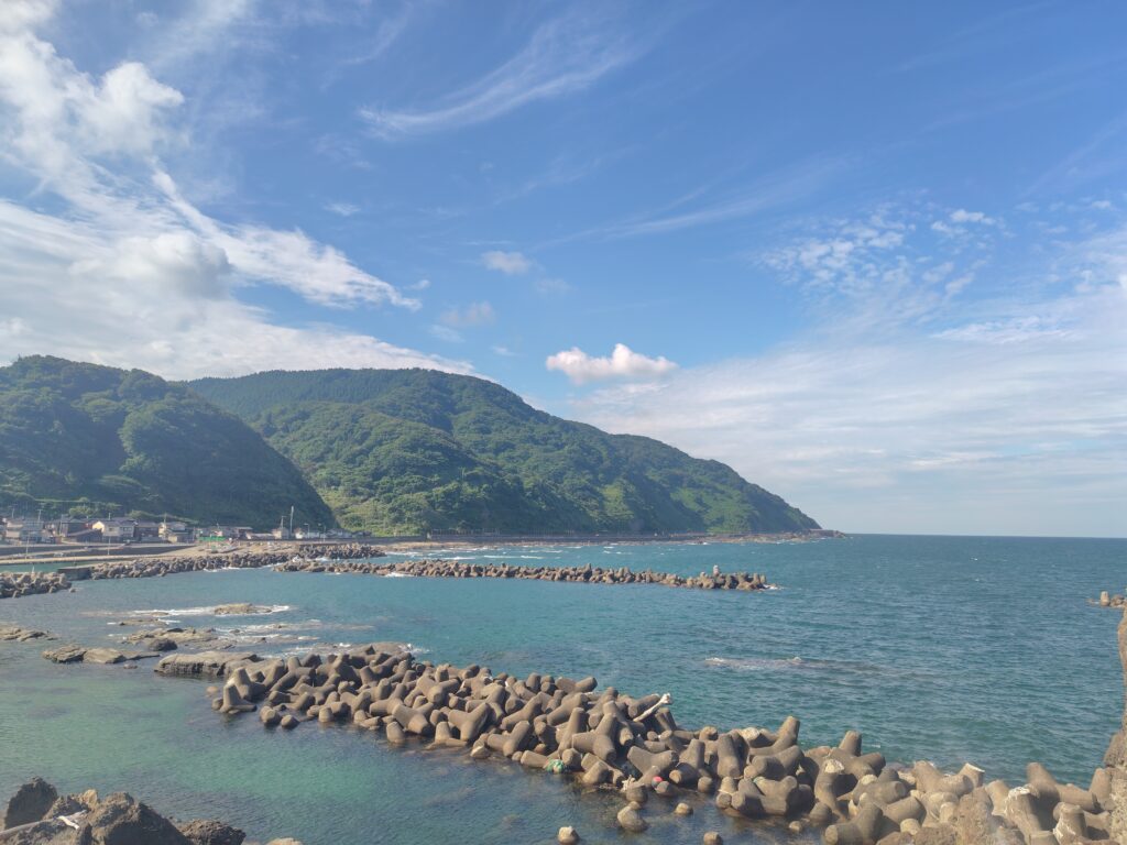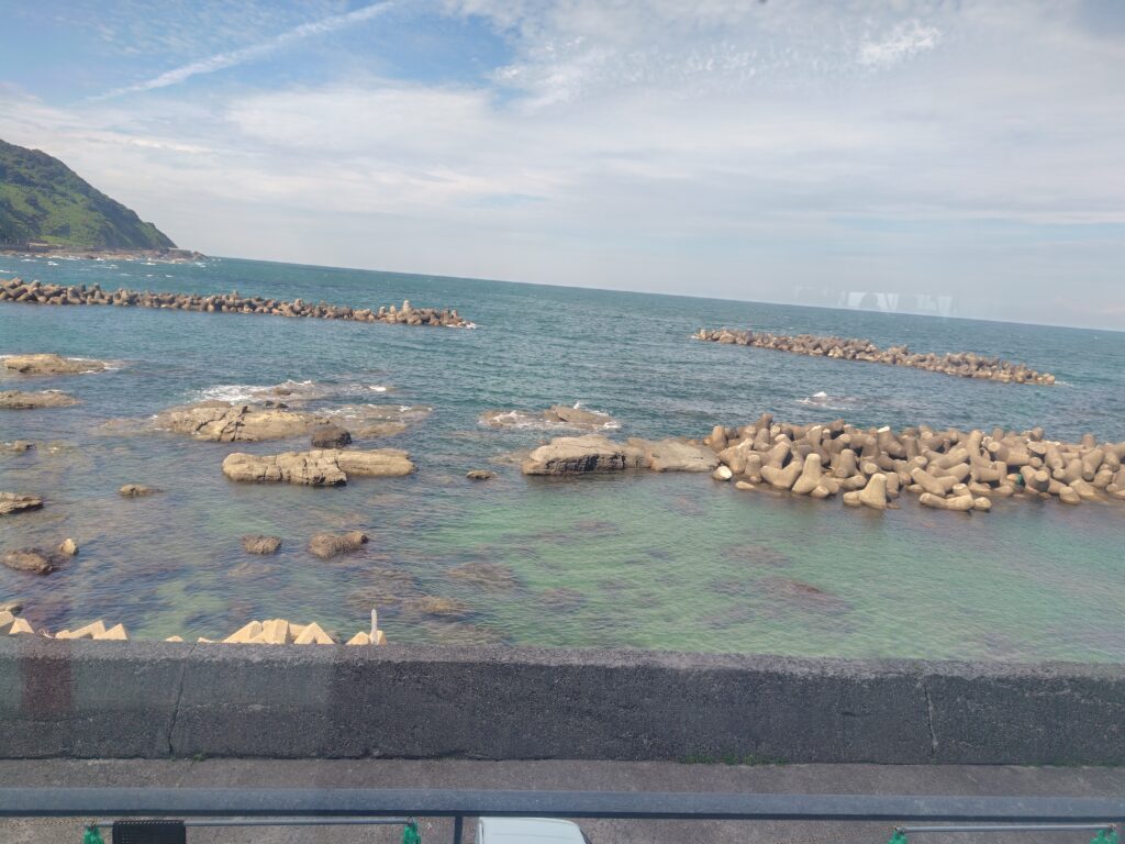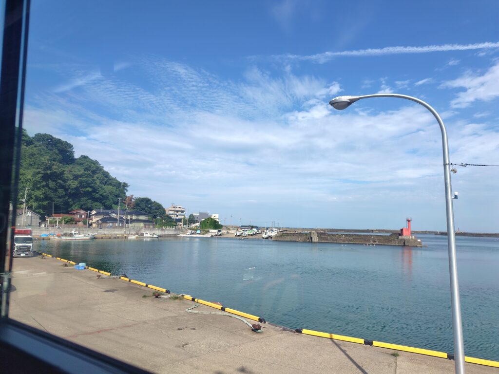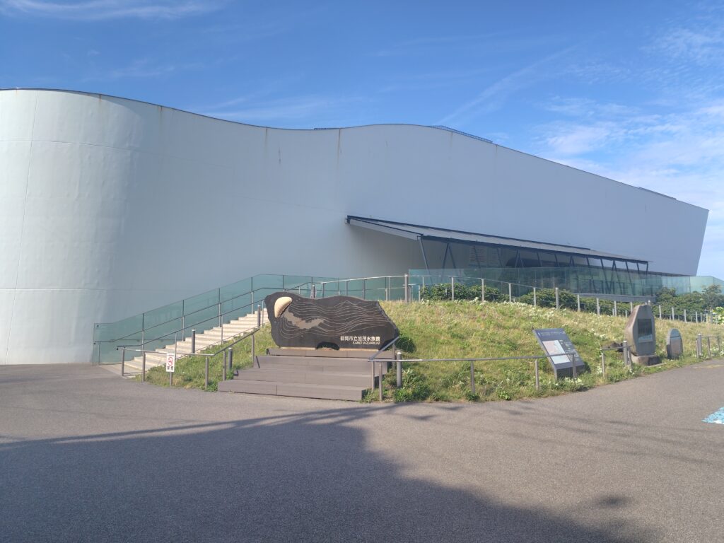 鶴岡市沿岸部、加茂地域に今回のお目当ての水族館はあります。湯野浜温泉線というバスに乗車。鶴岡駅前7:48発です。市街地の市役所やお城近くを経由し、西に進んで国道112号に入ります。菱津という字の地域を通り、トンネルを抜けて住宅地を通ると海が見えてきます。海洋高校前のバス停で学生さんたちを降ろすと、次はいよいよ水族館です。