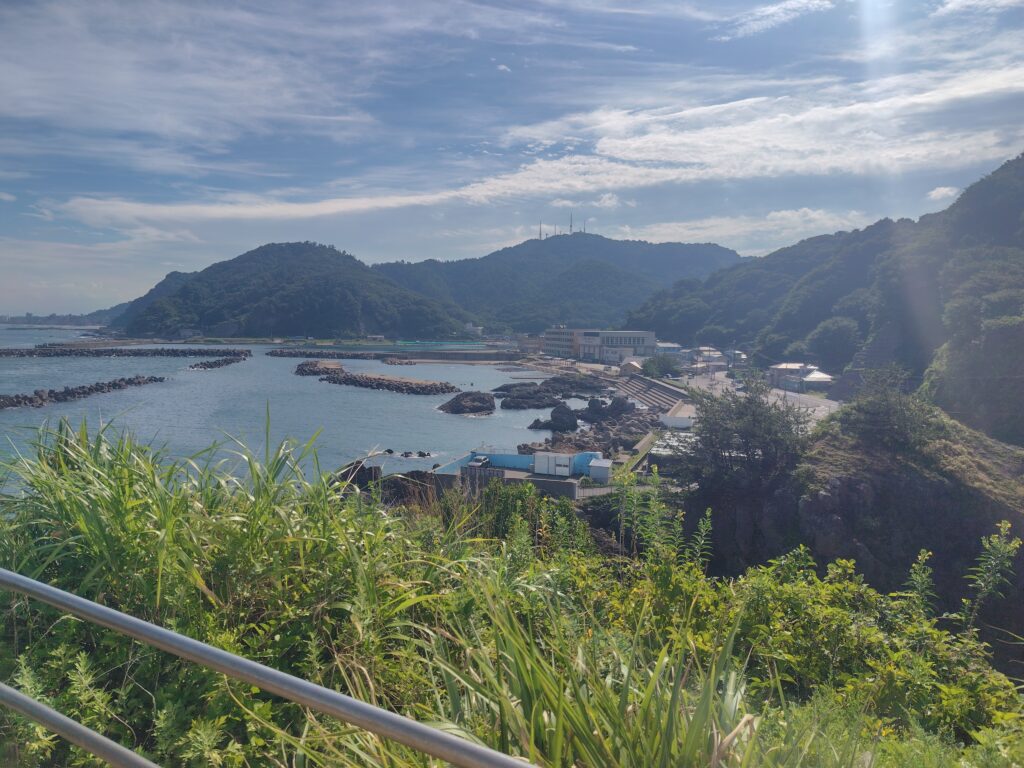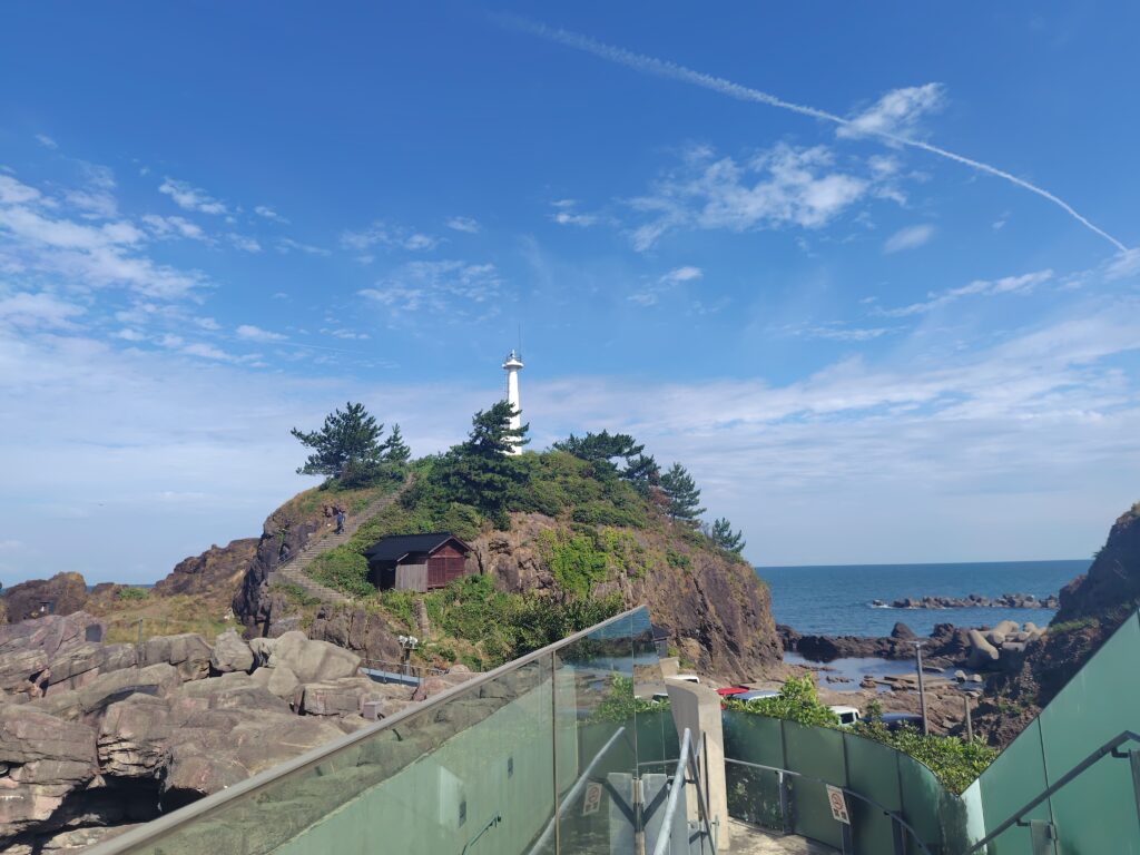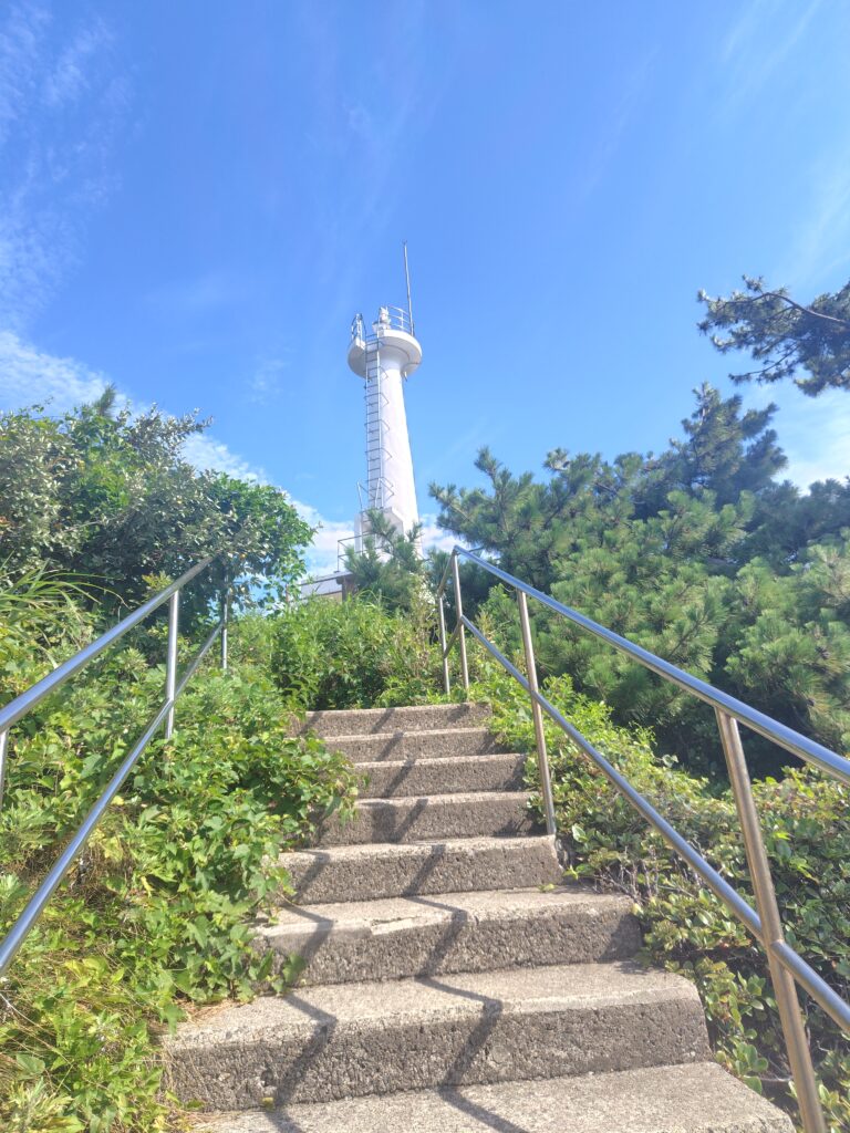 8:23加茂水族館バス停に到着です。開館は9時なので、30分ほど時間を潰します。水族館の目の前にある高台には灯台があり、日本海を望むことが出来そうであったため登ってみることにしました。