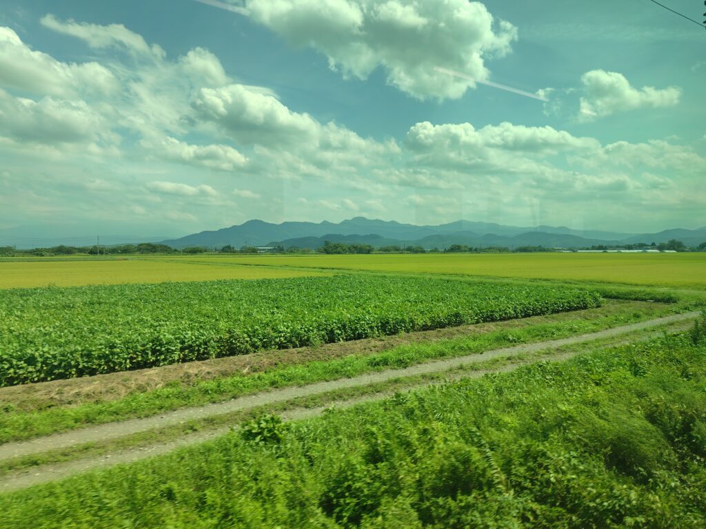 山形県を出て、新潟県を目指します。鶴岡市を出ると、その先は終点も位置する新潟県村上市。運行区間が短いわけではなく、両都市とも平成の大合併にてかなり広大な面積を持つようになったことが要因です。鶴岡駅を出てしばらくは、のどかな田園地帯を通りますが、羽越線といえば、日本海を望む絶景路線。これから、沿岸部に出て海が望めるようになります。