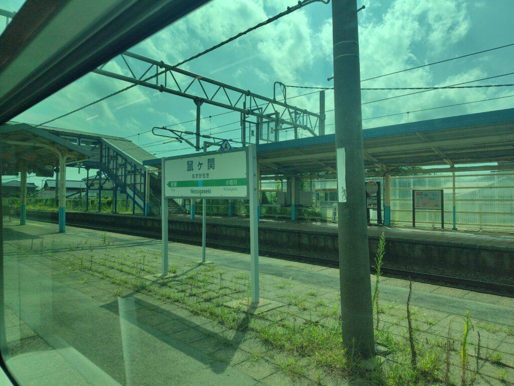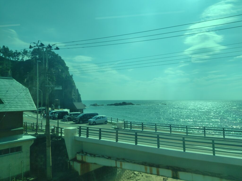 山形県最後の駅が、鼠ヶ関駅です。関と名に着く駅は国境付近に位置していることが多いので分かりやすいです。新潟県に入っても、美しい日本海は続きます。