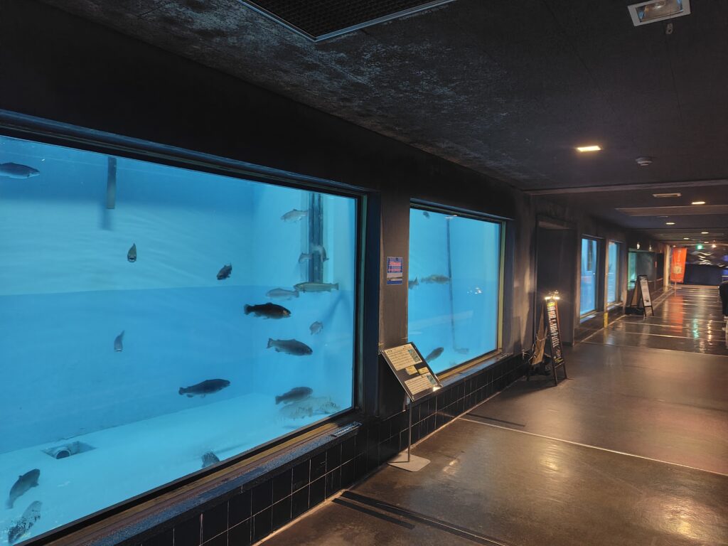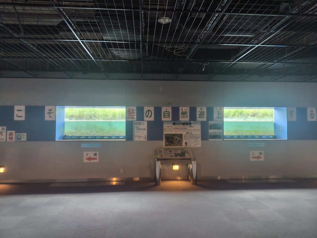 館内はかなり面白いものでした。単なるサケの展示のほかに村上市周辺に生息する魚の展示や、三面(みおもて)川という川の分流に窓が設置され、自然の状態での魚を見ることも出来ました。サケに特化し、川に窓を張るという展示方法は、北海道の千歳水族館を彷彿とさせ、かなり良かったです。