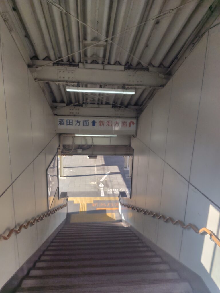 新潟県内の羽越本線をどんどん南へ行きます。県庁所在地、新潟の文字が見えてきました。村上を出て最初の主要駅は、市内の坂町駅です。ここからは米坂線が伸びており、山形県内の奥羽本線駅、米沢へとつながります。陸羽西線と同様日本海側の羽越線と内陸の奥羽線を結ぶ役割があります。しかし、こちらも運転を見合わせており、代行バスによる運行がなされています。坂町駅を出ると、長かった村上市を出て胎内市に入ります。中条などの駅を出て、新発田市に突入。新発田駅で下車します。新発田からは新潟駅へ短絡する白新線が伸びており、この列車も含めて多くの列車が白新線に直通し、新発田より先、新津方面の列車はかなり少なくなります。