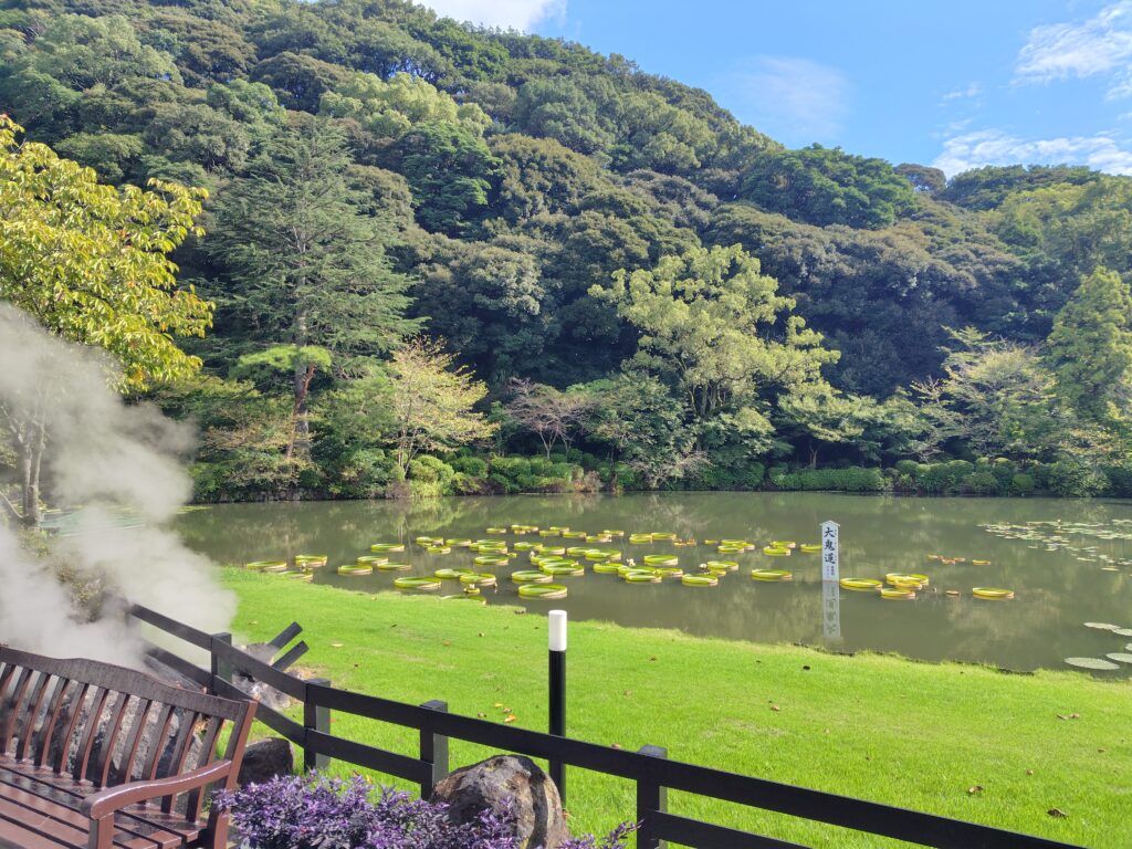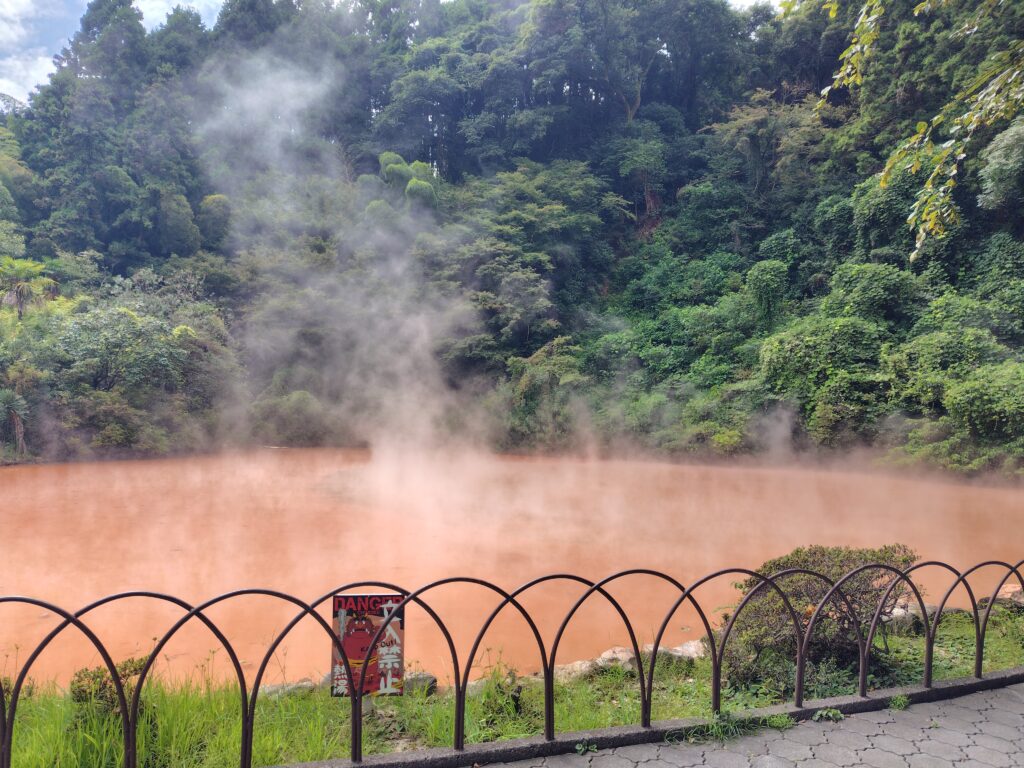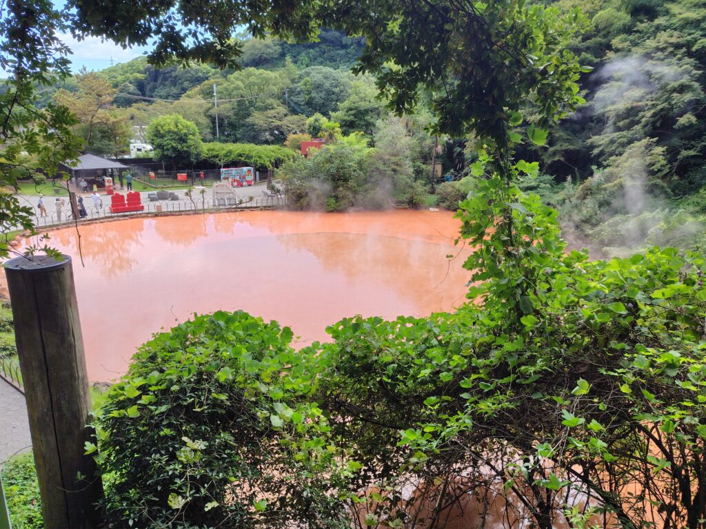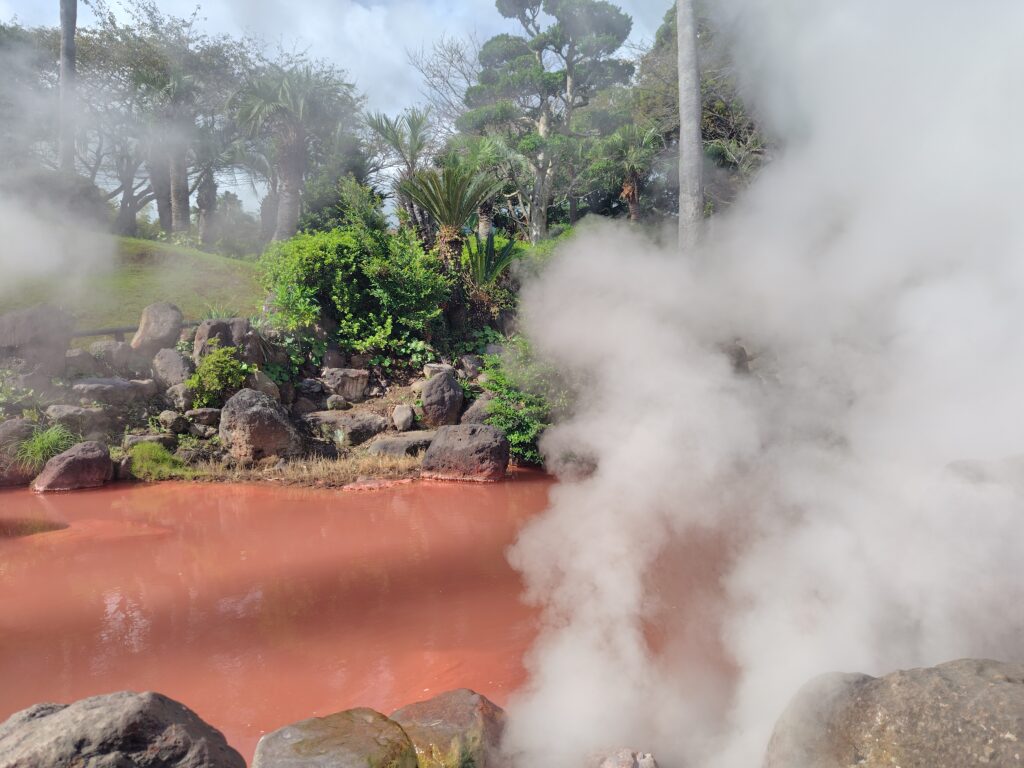 ということで地獄めぐりへ。最初は、恐らく最も多くの観光客が来るであろう海地獄。青い水は海のようで、海地獄という名にふさわしいです。その他にも真っ赤な湯や温泉の熱で飼育している熱帯性植物など様々な魅力が詰まっており、観光客が多く集まるのも納得の地獄でした。