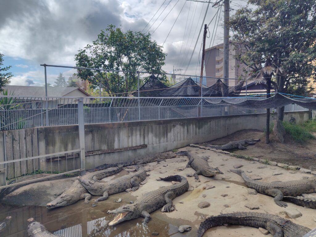 次は鬼山地獄。鬼はかまど地獄に多くいたので、さて次はどんなものなのかと期待しながら向かいます。鬼山地獄には鬼はおらず、なんとワニがいました。このワニも地熱を利用して飼育しているのかもしれません。かなり多くのワニが見れ、思ってもみない展示を楽しめました。