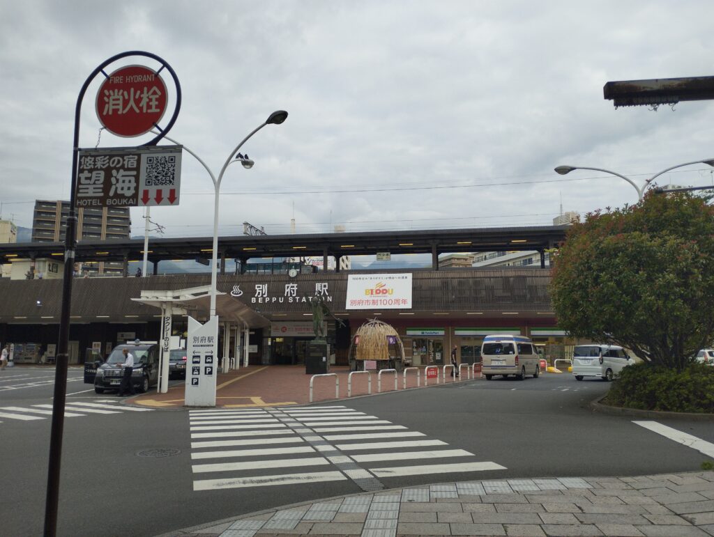 おはようございます。別府市の別府駅に来ました。ここからバスに乗り、市内北部の鉄輪地区を目指します。