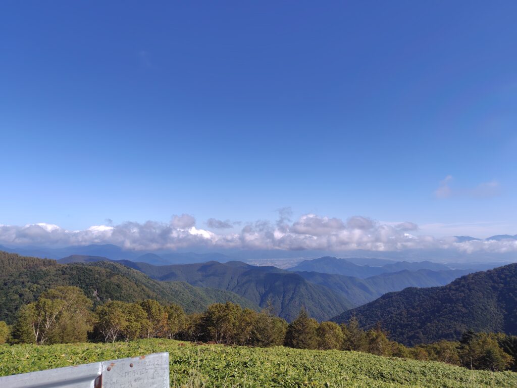 美ヶ原高原には多くの絶景スポットがありますが、その中でも最高峰に位置する王ヶ頭に向かってみます。駐車場から先は簡単な登山道のようになっています。絶景を見ながら歩くこと40分ほど、王ヶ頭に辿り着きます。