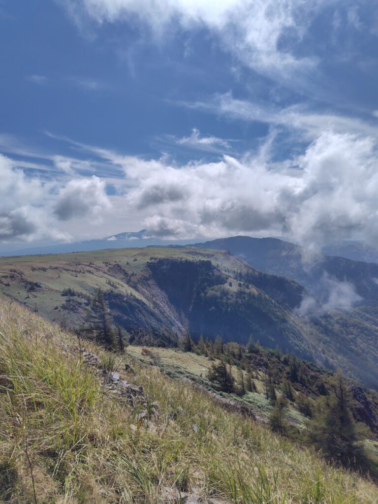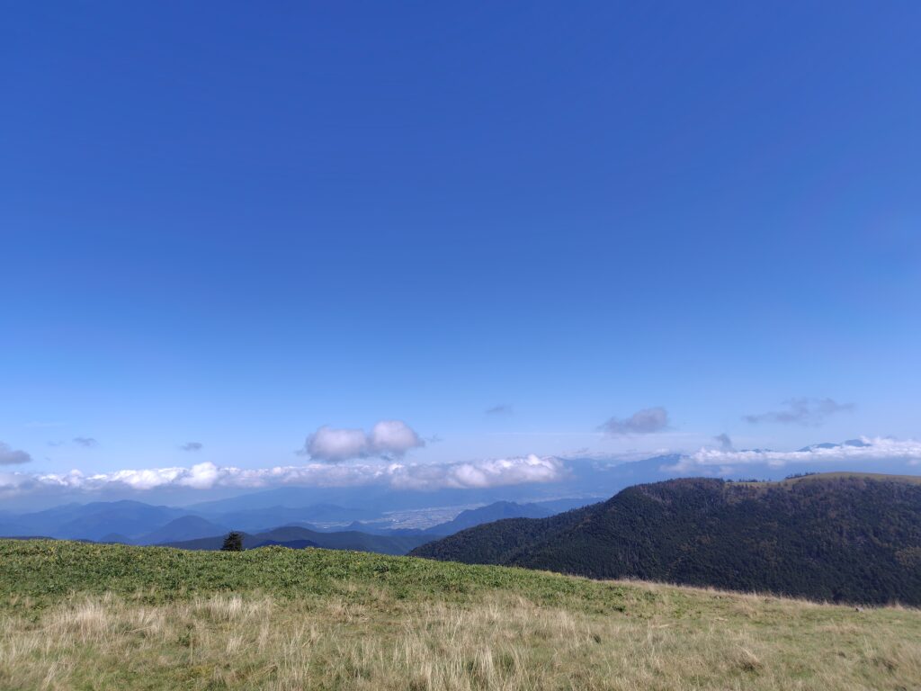 王ヶ頭から先は、高原の名にふさわしい、広々とした原っぱが広がっていました。標高2000m超とかなり高いこともり、ひんやりとしていました。その先にも道は続き、王ヶ頭へ登るまでに分岐した道からは王ヶ鼻などもあるようですが、他にも行きたいところがたくさんあるので、美ヶ原はここら辺にしようと思います。