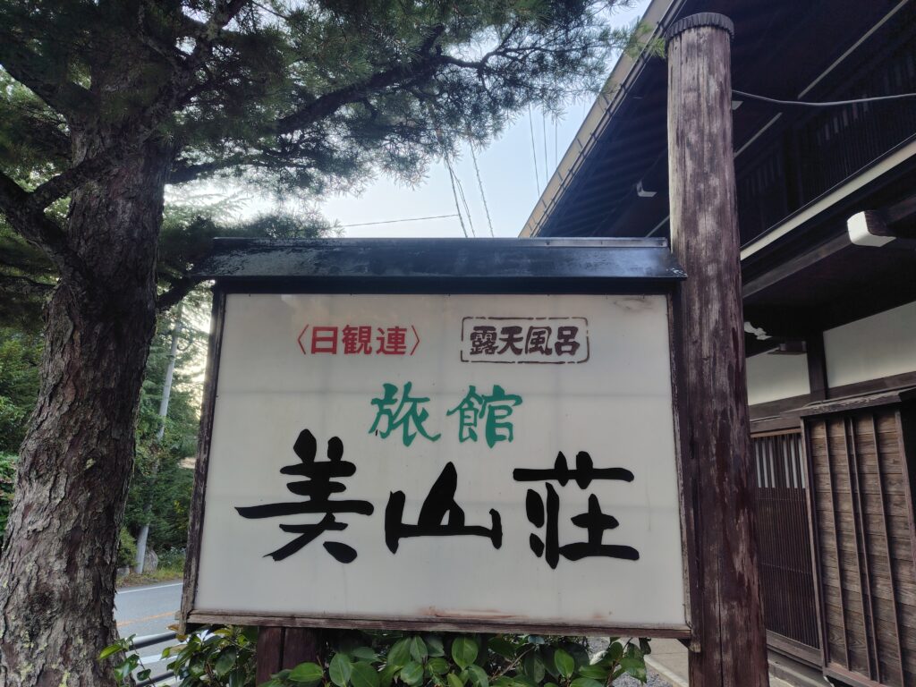 さてさて、今回宿泊する温泉地に向かいます。栃尾温泉の対岸、その少し奥まったところにある国道471号線沿いに多くの旅館が軒を連ねる、新平湯温泉です。その中で美山荘という旅館に今回は宿泊します。昔ながらの旅館といった感じで、良い雰囲気です。
