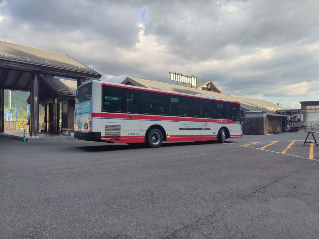 おんぽいの湯からバスに乗って中津川駅に帰ります。先程もらったバスセット券を使用しましょう。