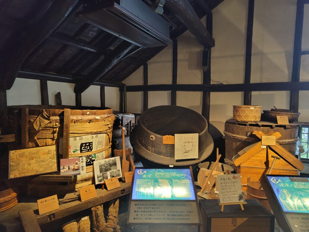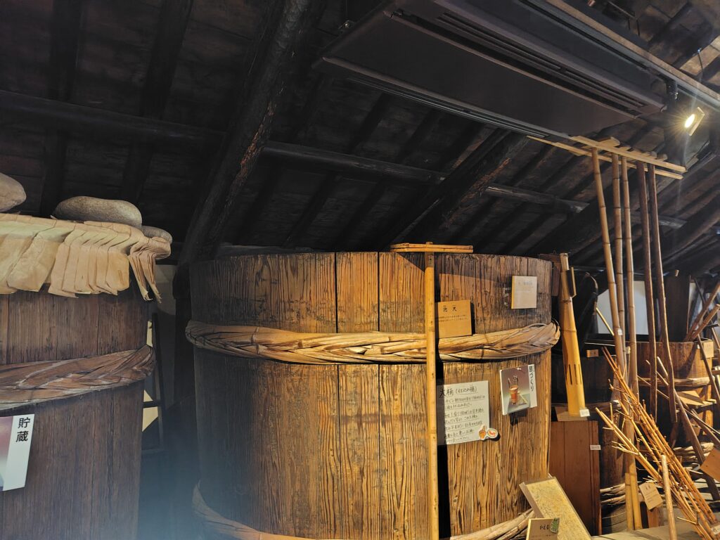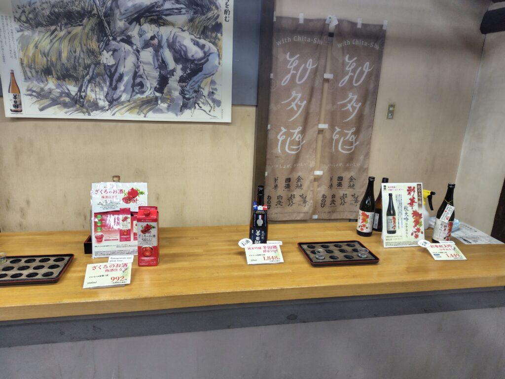 ここには、日本酒造りで使う道具が展示されており、説明を受けながらそれらを見ることが出来ます。その後は國盛さんの説明ビデオを見て、試飲させてもらうことが出来ます。なんと試飲できるものは毎回異なるようです。日本酒のひやおろしと半田郷、ざくろのお酒 梅酒仕立てとフルリア グレープフルーツのお酒、梅シロップの5種類を頂くことが出来ました。どれも絶品で、さすが歴史ある酒蔵は違います。色々買いたかったのですが、先日蟹江でも日本酒を買ってしまったので、ひやおろし を購入しました。