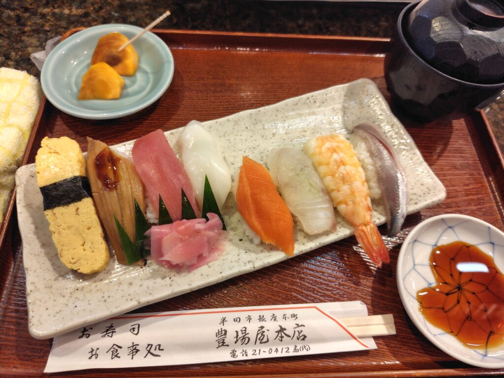 ご飯を頂こうと思います。お酢が古くから生産されてきたことから、尾州すしというお寿司が人気だそう。少し歩いたところにある、豊場屋本店 さんを訪ねます。ランチタイムのおまかせにぎり寿司を注文しました。カウンター席だったので、すぐ近くで握って頂けるのを見られ、美味しさ倍増です。久しぶりの寿司でしたので、絶品でした。幟ではあなごがピックされており、穴子寿司は確かに美味でしたので、今度はそちらも頂きたいです。