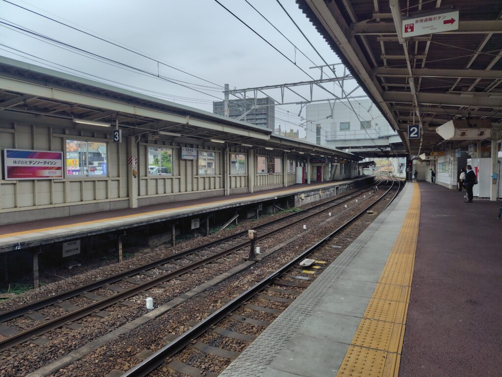 JR線を乗り継いで半田駅に来ました。東海道線の快速が停車する大府駅で降り、ワンマンの武豊行に乗り換え、武豊線に揺られます。最初は混んでいましたが、東浦町の緒川駅で多くのお客さんが降り、その先は空いている車内でした。半田駅は市の名前を冠している割には小さめな規模のように感じました。その理由はのちに分かることになりますが。ホームは平面ですが、踏切問題があるのでしょう、高架化工事が進められていました。