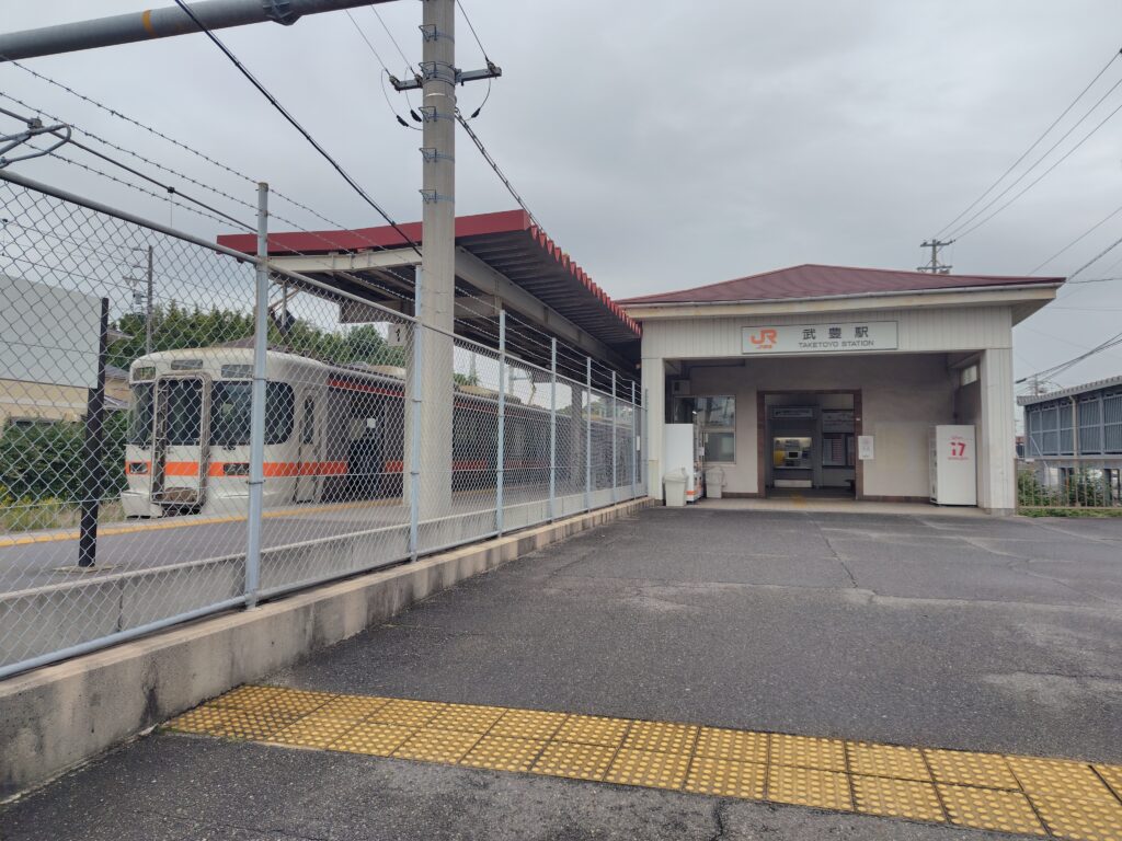 各駅に停車する急行に乗車し、8分、知多武豊駅に到着です。武豊町役場もすぐ近く、中心部に近い駅です。