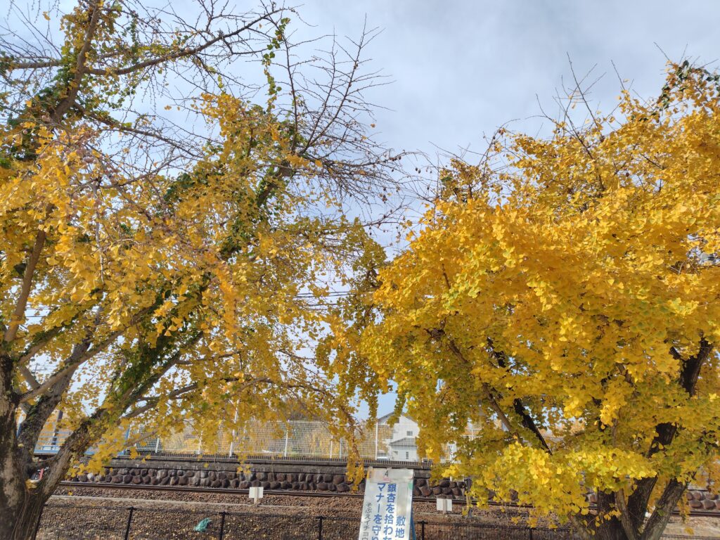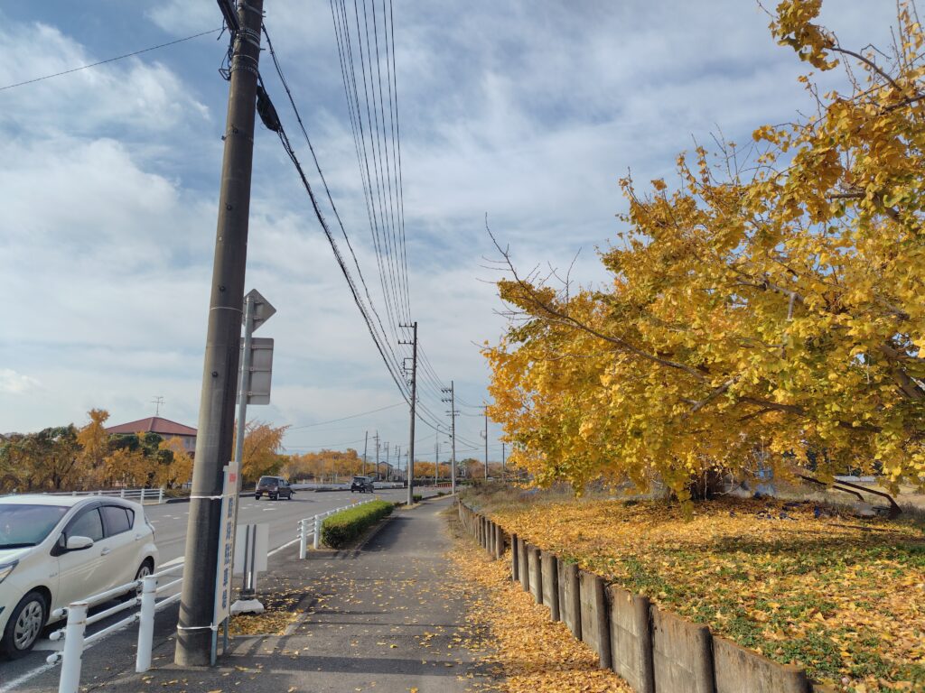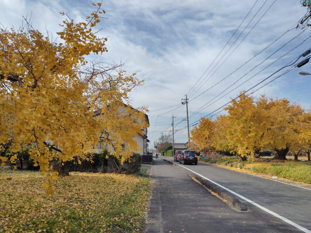 さて、これで帰るというのも名残惜しいですので、祖父江の中心部まで行ってみようと思います。現在は稲沢市ですが、かつては祖父江町という独立した自治体だったようです。そこに向かう道中も、銀杏が多く、楽しく歩くことが出来ました。