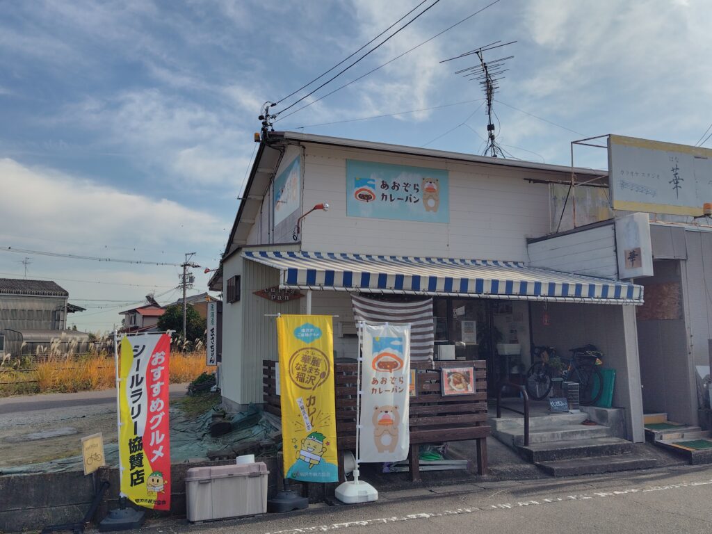 中心部に流れる川、日光川に注ぐ領内川の近くに、パン屋さんを見つけました。今回のお昼はこちらにしようと思います。あおぞらカレーパン さん。稲沢市は華麗なる街としてカレーをご当地グルメとしています。そんな稲沢カレーを提供するお店として知られるカレーパン屋さん。火曜日限定の、鶏のレモン煮×カレーキャベツというものを頂きました。揚げ鶏にレモンが合うのは言うまでもないとして、敷き詰められたキャベツはピリリと辛いカレー、レモンがそれをマイルドにするような縁の下の力持ちとして働いていて絶妙なバランスです。祖父江に来て、かつそれが火・日にしか食べられないとなると大変ですが、また行って食べたいと思える味でした。