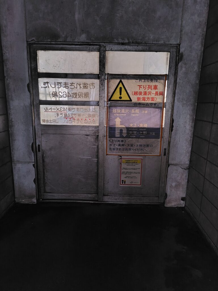 ひとまず列車を降ります。上り線の土合駅は、何の変哲もない静かな駅といった様子ですが、下りホームがかなり特殊なのです。ご存じの通り、地下深くにあります。次の下り列車長岡行は9:52発なので、ひとまずホームから出ます。