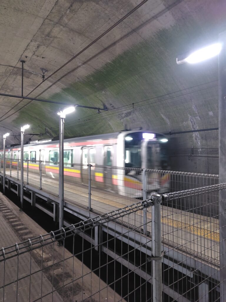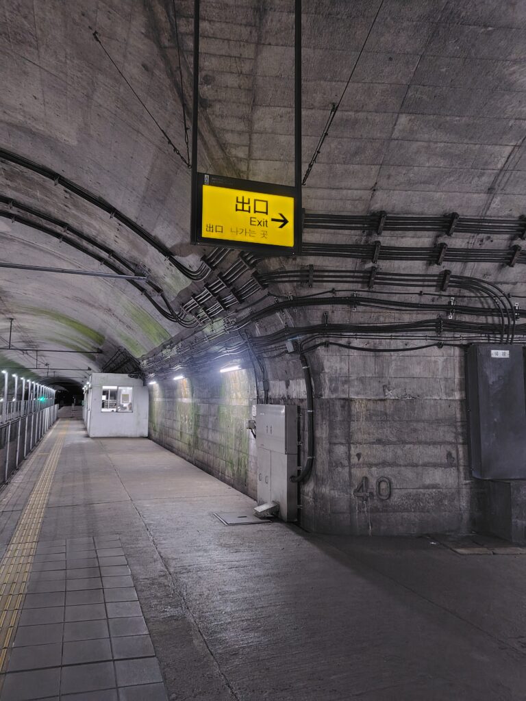 駅前を少し歩き、駅に戻ってきました。いよいよ、下り線の地下ホームに向かってみようと思います。