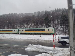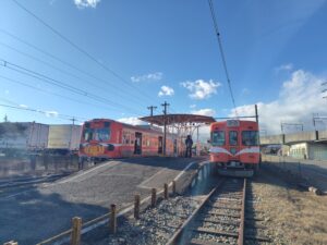 特に何も考えず降り立ったため、駅前にあった観光案内所を訪ねました。グルメの紹介がないか探したところ、豚足を使用したおもろカレーという名物グルメがあるとのこと。アニメ・漫画が人気な『ゆるキャン△』でも登場していました。ちょうどこの時期、YouTubeでアニメが無料公開されており、楽しく拝見していたので、聖地巡礼のようなことをしてみようと思いました。ひとまず、おもろカレーが食べられるとらしいお店を目指して県道を北上します。