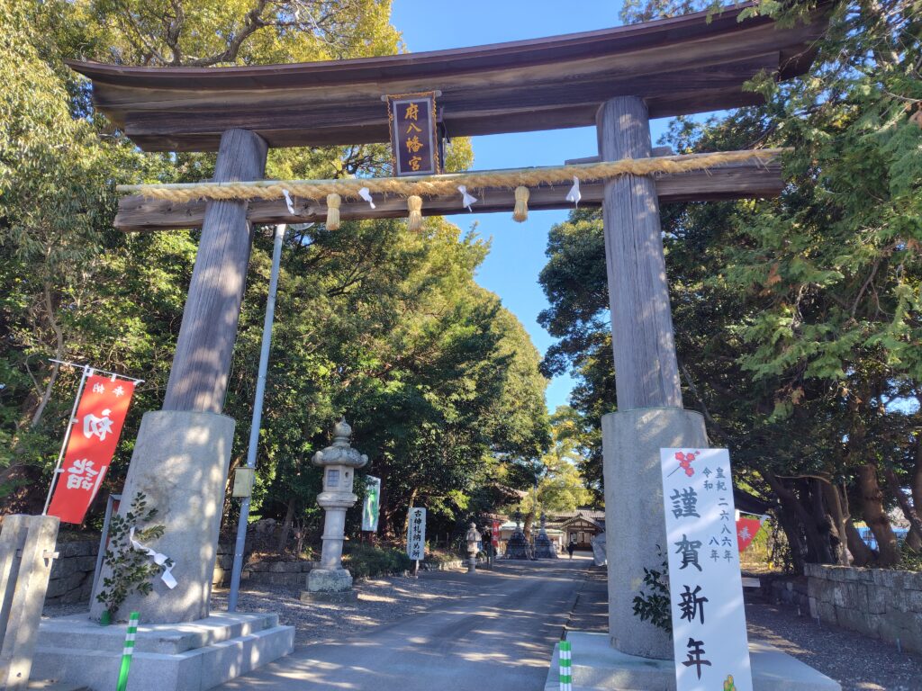 磐田市役所を通り過ぎると、右手に神社が現れました。遠江国の府八幡宮だそうです。かつての県のような位置付けにある国。国府は言うなれば県庁のようなものなのでしょう。現在の静岡県西部にあたる、遠江国。今でこそ最大都市は浜松市ですが、その昔はここ磐田が中心だったのでしょうか。そんな昔に思いを馳せながら参拝します。