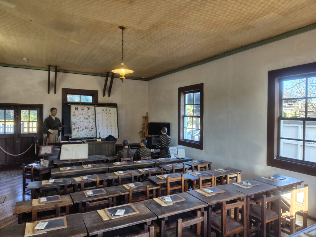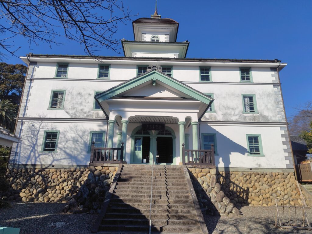 見付天神から南へ進むと、なんとそこは東海道。完璧な回り方が出来ている気がします。先ほど見た姫街道の分岐点である西を目指して歩きます。見付宿周辺は車通りの多い道となっており、当時の宿場町の面影を残す和風建築はあまり見られませんでした。しかし、それでも見どころはしっかりあります。旧見付学校。明治初期に造られた学校で、現存する最古の洋風木造校舎だそうです。中は資料館になっており、磐田周辺の歴史や日本の教育史についても紹介されていました。なんと入場無料で、こちらも驚きです。お気軽に足を運んでみてください。