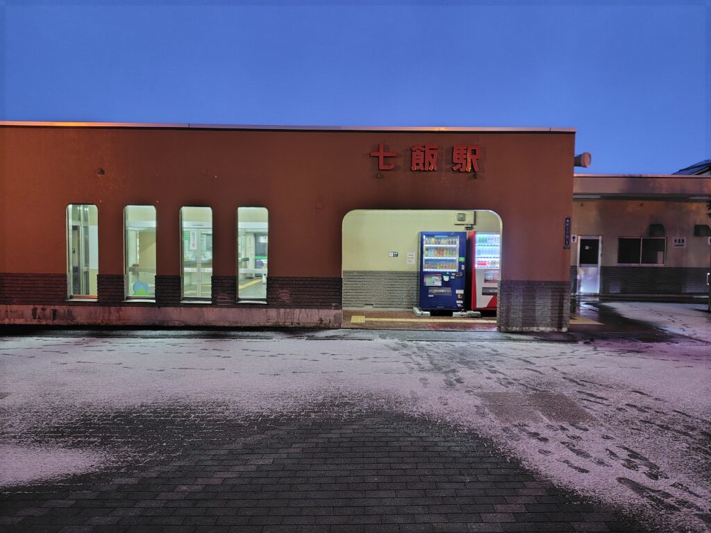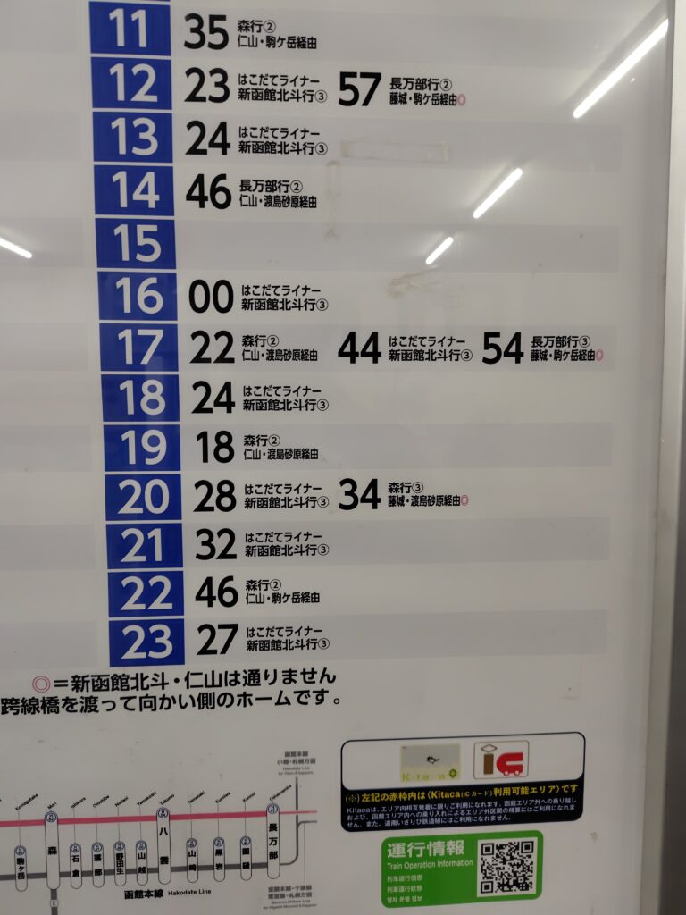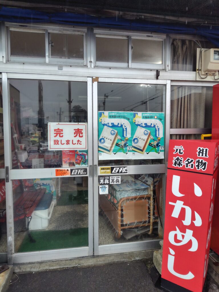 ということで、わずか二駅だけ乗車し、先程停まっていた森で降ります。割と混雑していた車内ですが、森で降りたのは私だけ。せっかくなので駅前でいかめしを買い、今日の夜ご飯にしよう、と思ったのですがなんと完売。かにめしといい、残念ながら海鮮にはありつけないようです。