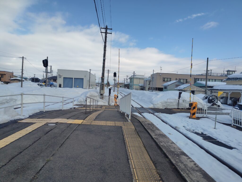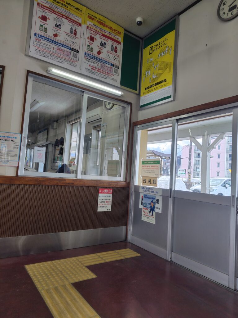 途中の十和田南で5分ほど停車し、方向転換します。小坂町の方面に路線が伸びるかのような線形ですが、延伸計画があっただけで実際に鉄道路線は出来なかった模様。ここからあと5分ほどの乗車で鹿角花輪駅に到着です。