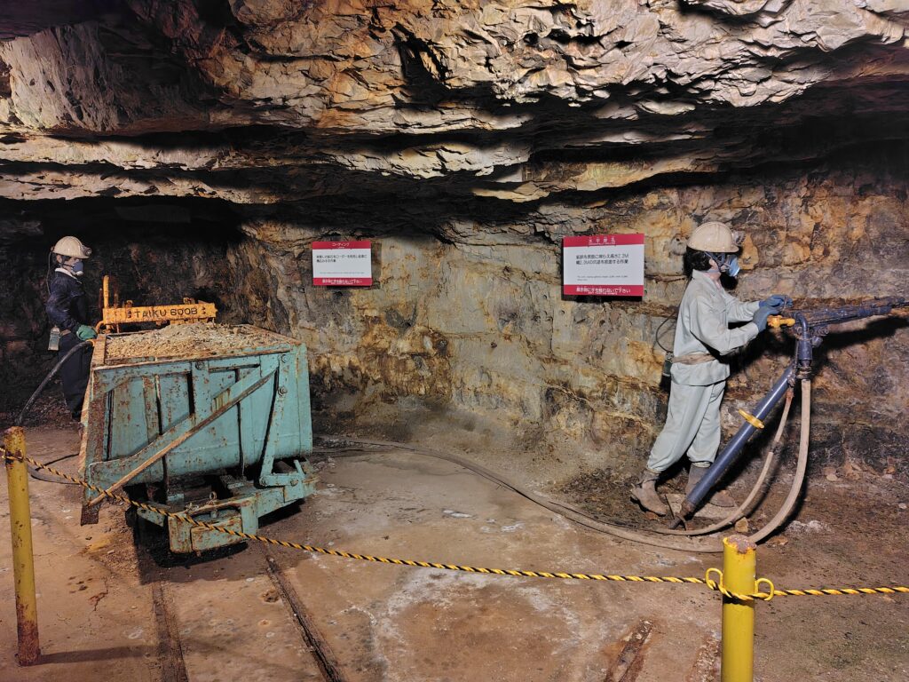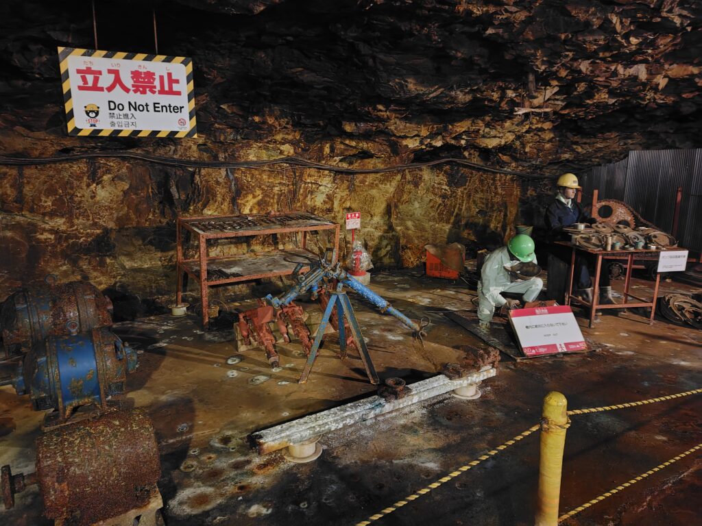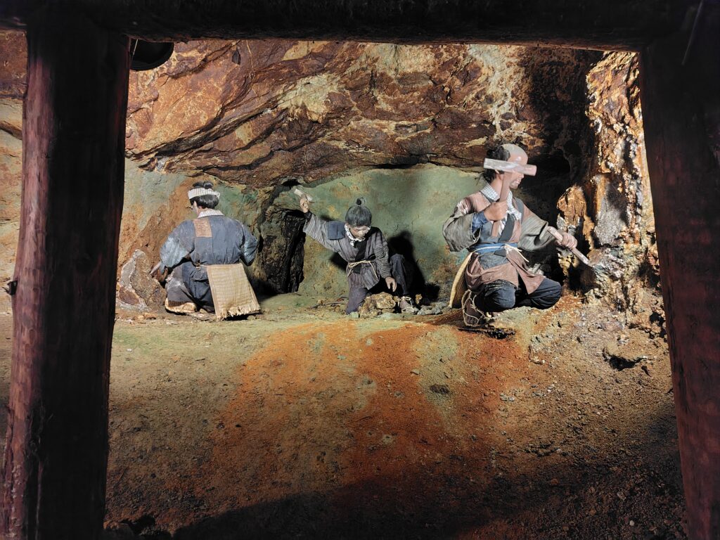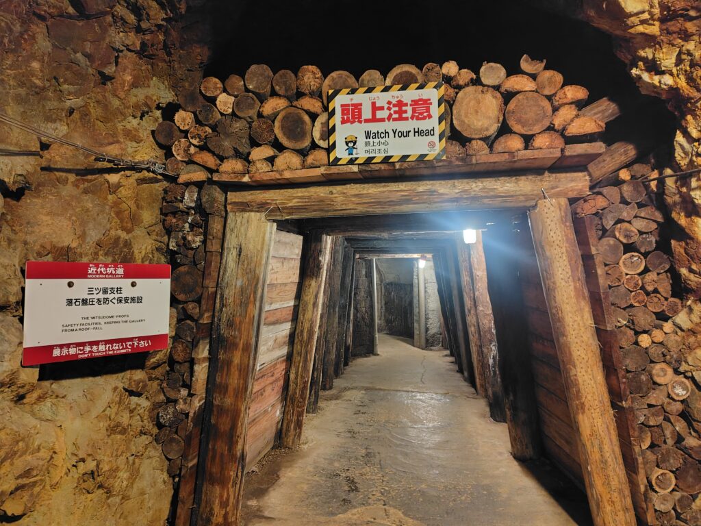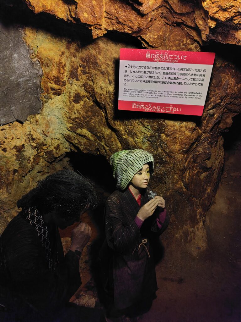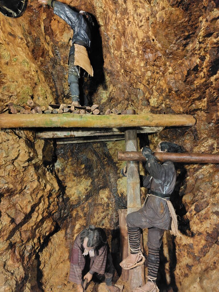 最後は江戸時代の手彫り坑道になります。色々な人が鉱山労働に従事したようで、中には弾圧を逃れてきたキリシタンの人々もいたんだとか。なかなか驚きの歴史です。