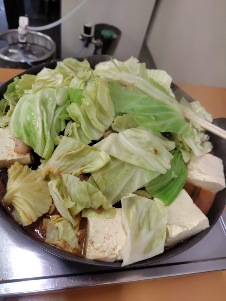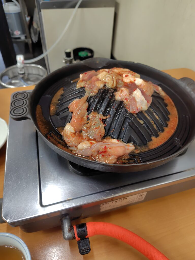 恐らく最初で最後になったであろう尾去沢、満喫することができました。あらかじめ予約していた旅タクが来てくれたので、駅に戻ります。12:15の到着。ここから帰るのですが、盛岡行は14:32発なので、少し暇をつぶします。とりあえずお昼ご飯を。鹿角市といえばきりたんぽが有名ですが、ホルモンも人気。近くにあったということもあり、ホルモン幸楽 さんに伺います。ジンギスカン鍋でキャベツや豆腐とともに焼いていただく絶品グルメでした。