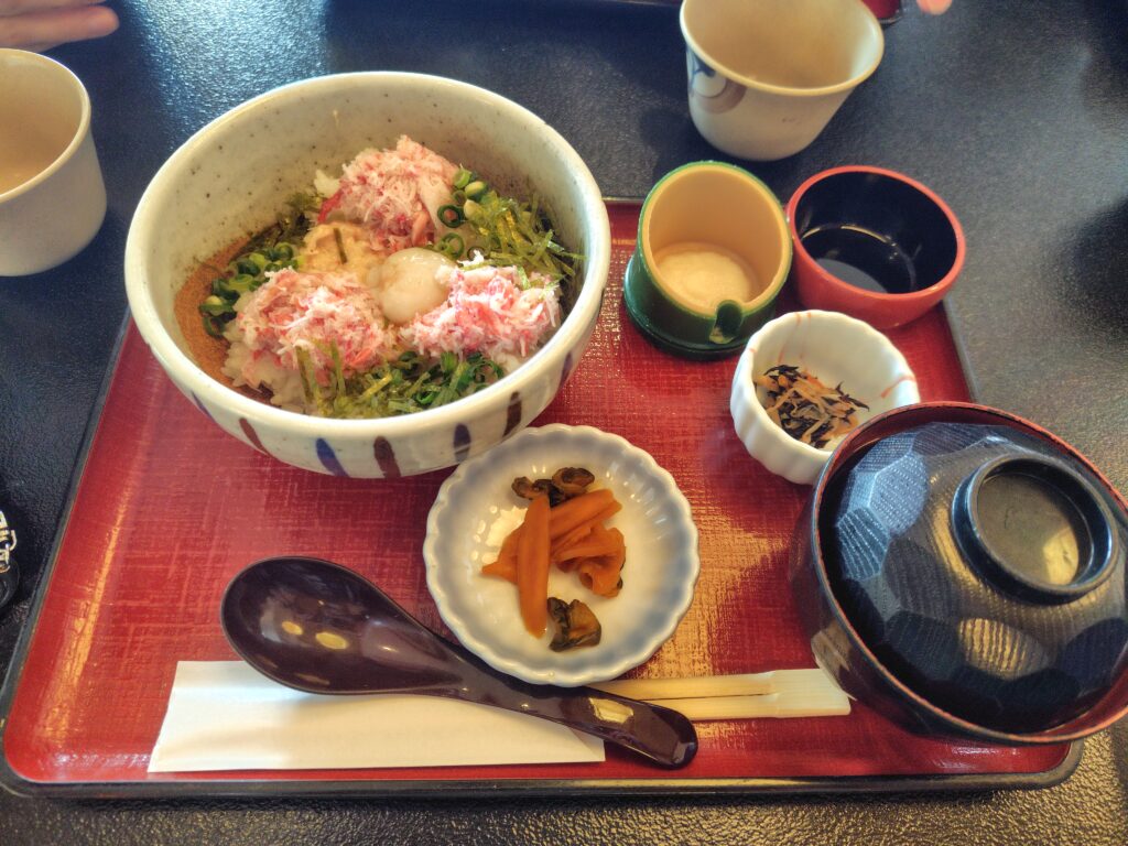 ゲゲゲの鬼太郎を全く知らない状態での訪問でしたが、十分楽しめました。むしろ鬼太郎に興味を抱くことができたので、良い経験でした。さて、少し車を走らせます。竹内工業団地と呼ばれる一帯で、工場だけでなく、海鮮を中心とした飲食店やスーパー、カフェ、温泉やタワーが位置する観光地でもあります。ここにある、海鮮食堂 なかうら さんへ。漁港が併設され、そこでも鬼太郎たちが迎えてくれました。食堂では、カニ丼を注文。甘みのあるカニは絶品で言葉にならないほどでした。お味噌汁はしじみで、松江にも近い境港の立地が良く表れた絶品定食でした。食後は近くの澤井珈琲で一服。良いひと時です。