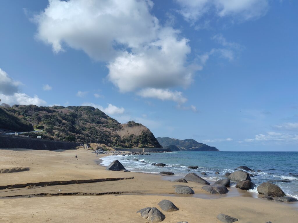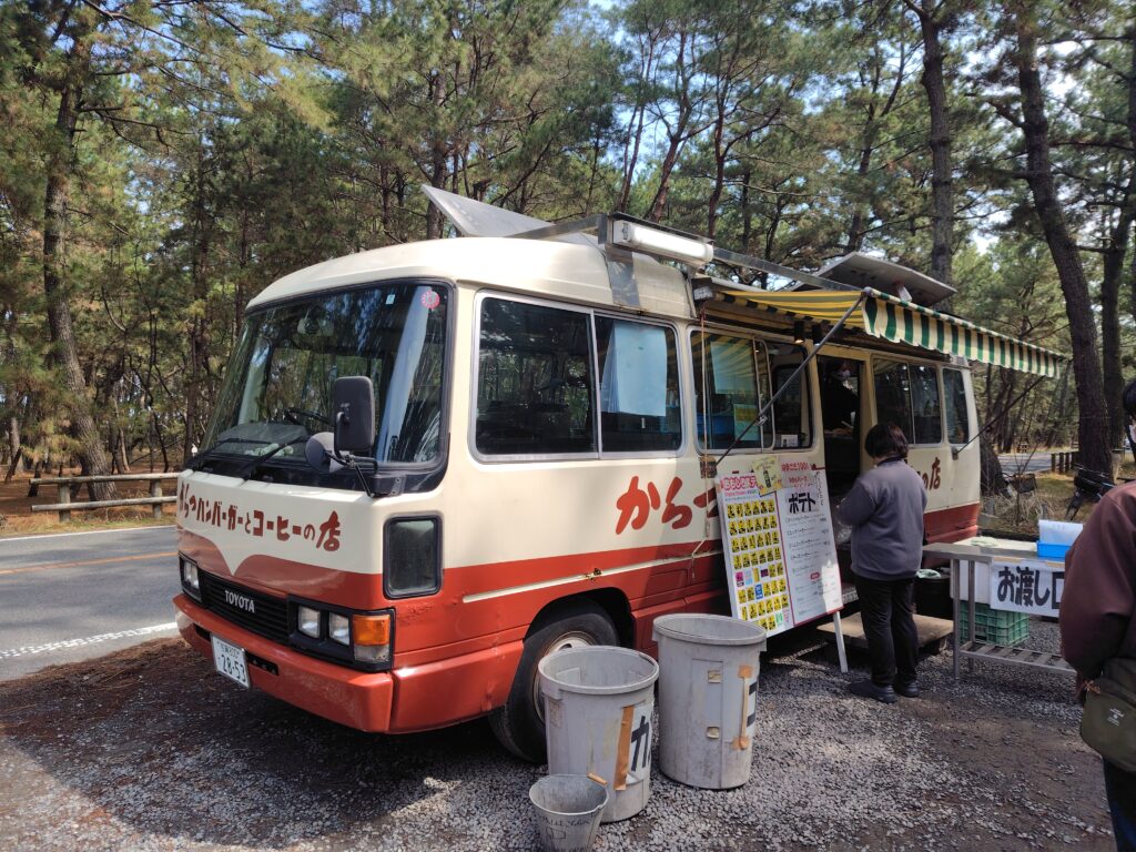 続いては更に西へ。国道202号を進むと、佐賀県に入ります。唐津市、佐賀県の第二都市です。佐賀を代表する観光地の1つである、虹の松原を訪ねます。国道を逸れて県道347号に入ると、周囲が松に覆われた楽しい道が現れます。ここには、からつバーガーというお店が出店しているので、そこを訪ねます。肉厚で具だくさんのバーガーはとても絶品。車で購入し、停めておいた車内でいただくという非日常感も相まって最高でした。