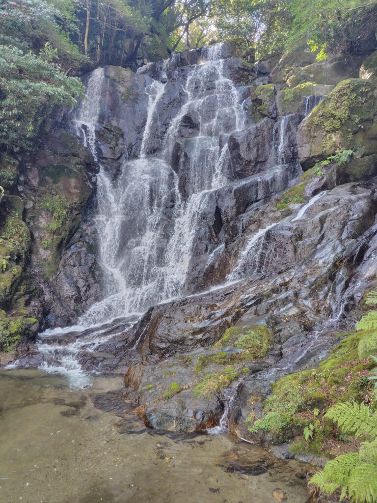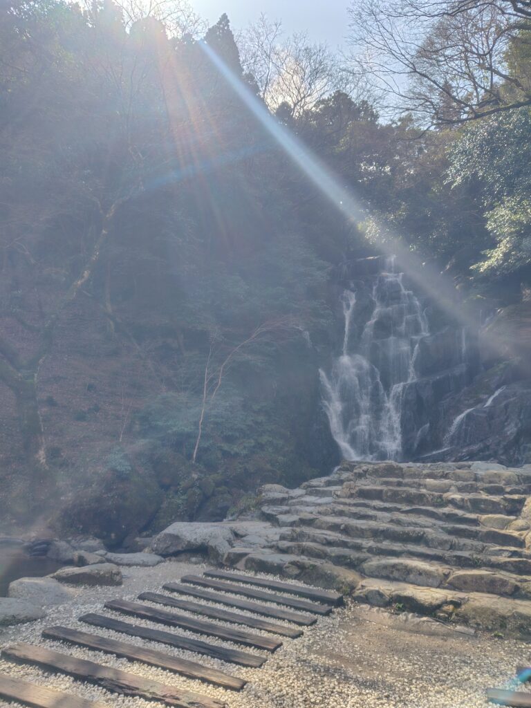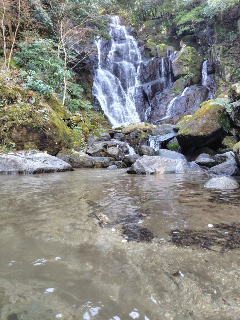 続いて糸島市でもう1つ。海の観光地の次は山の観光地へ。白糸の滝です。曲がりくねった道を越えていくと辿り着く、水と空気のキレイなところです。ヤマメ釣りが楽しめるようで、焼き魚の良い匂いが漂っていましたが、今回食べたいものは決まっているので、グッとこらえて先に進みます。