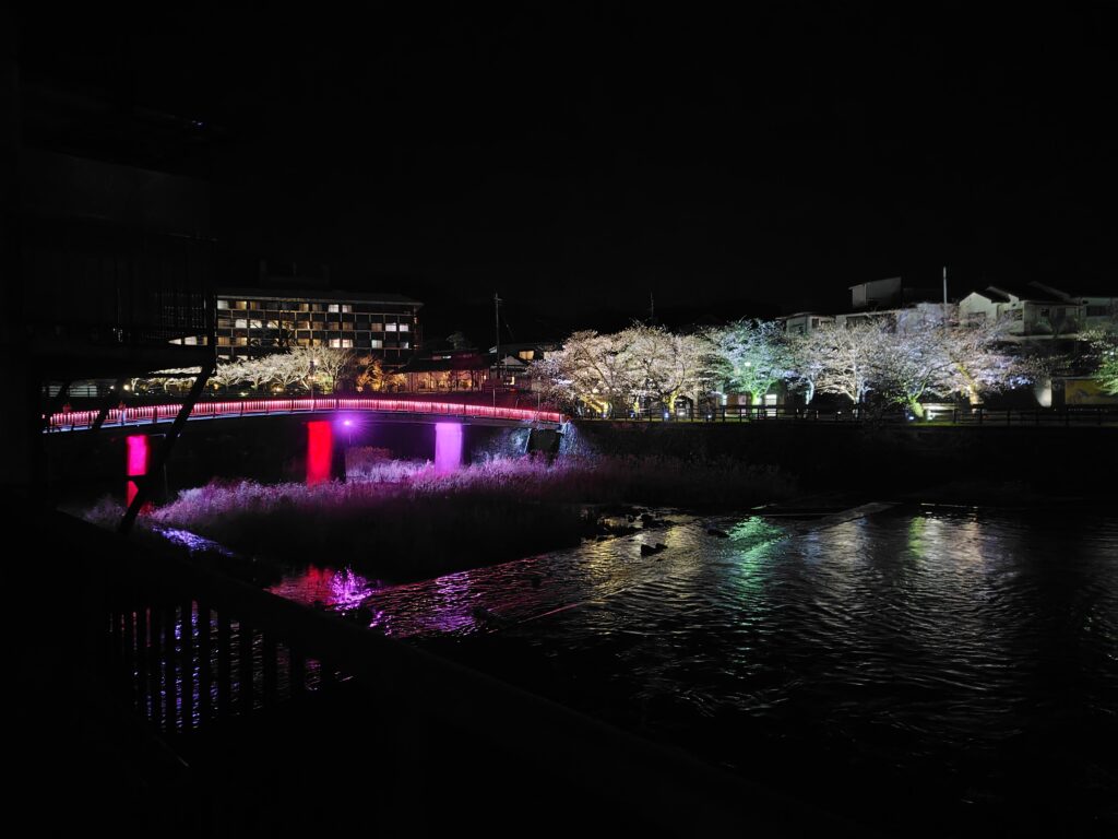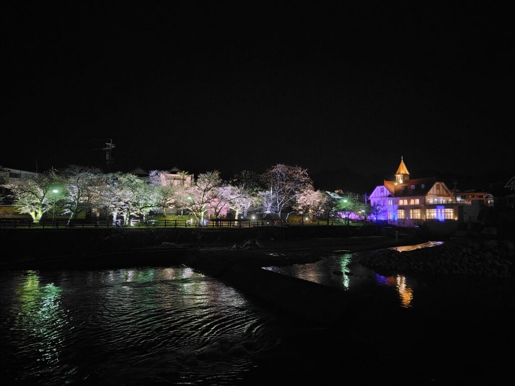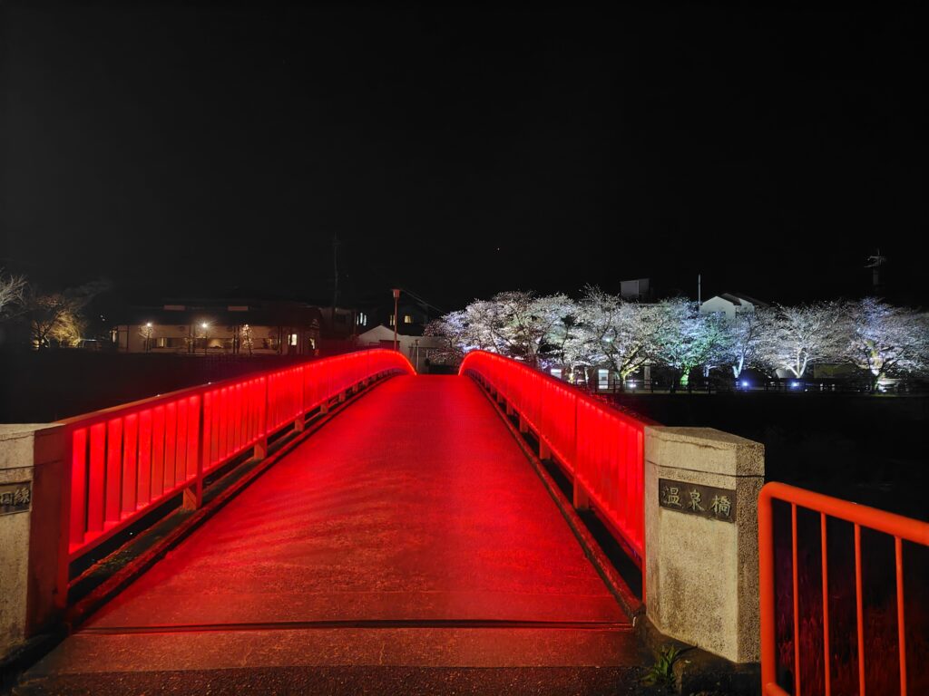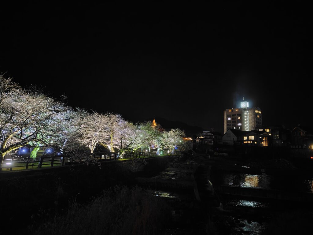 ようやく、満を持して嬉野に向かいます。春という季節なこともあり、塩田川沿岸には桜満開。夜桜も朝の明るい時間の桜も最高です。